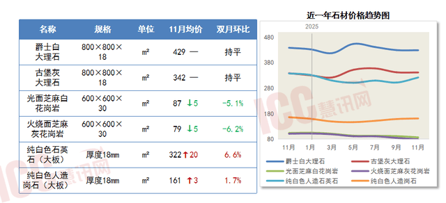 11月石材价钱涨跌互现。035亿元,国表里铜价波动相对暖和,